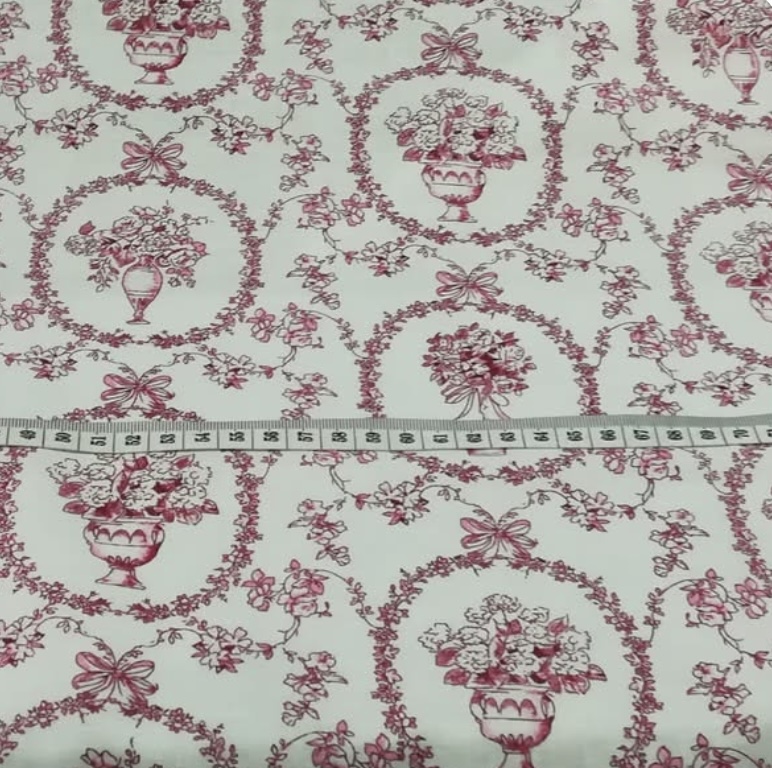 140 cm széles, vintage mintájú, 100% pamutból készült vászon természetes tapintású, légáteresztő anyag.